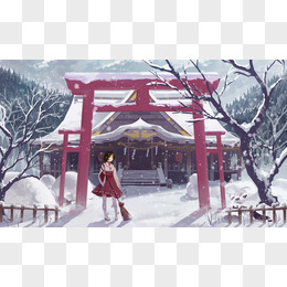 手绘插画风小伙伴铲雪扫雪免抠元素