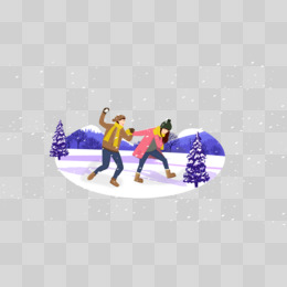 扁平冬季户外打雪仗素材
