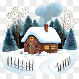 手绘卡通冬天小伙伴扫雪场景插画免抠元素