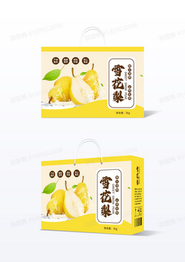 简洁大方浅黄色雪花梨水果包装礼盒设计模板水果包装盒