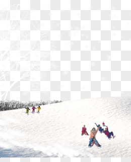 手绘卡通新年小孩们在雪地玩耍场景免抠素材