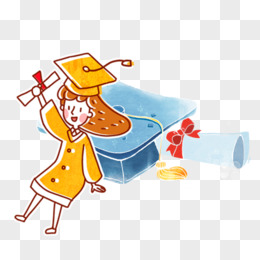 手绘风格穿着学士服的女孩抱着花束的插画的免抠元素
