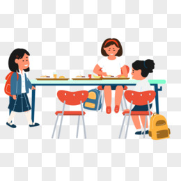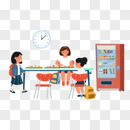 创意插画幼儿园学生儿童排队打饭吃饭元素