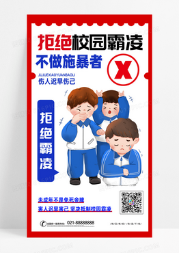 简约时尚拒绝校园霸凌打架学生红色大字报风海报海报设计