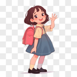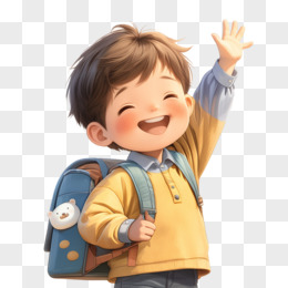 3D卡通一个背书包的男学生挥手打招呼免抠元素