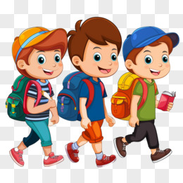 卡通学生开学回校免抠元素