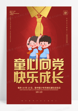 手绘卡通学生系红领巾敬礼场景插画免抠元素