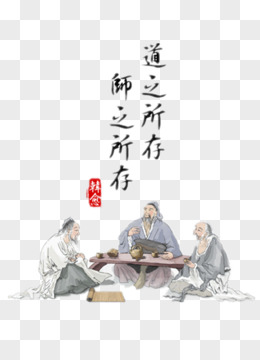 手绘水墨风清代私塾先生教书学生听课情景元素