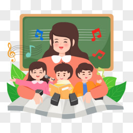 卡通矢量创意老师教学生唱歌弹琴场景素材