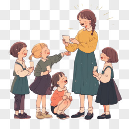 教师节快乐老师学生教师园丁草地小朋友花朵