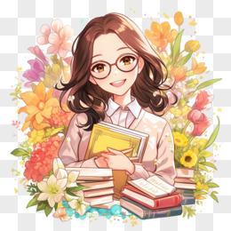 卡通风教师节抱着书本扎着马尾女教师黑色剪影免抠元素