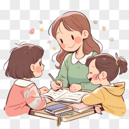 手绘创意巨人老师怀抱学生唱歌插画元素