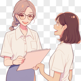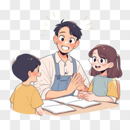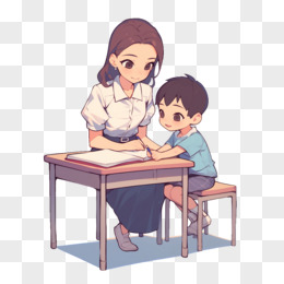 卡通风女老师在桌子前给学生解答问题免抠元素