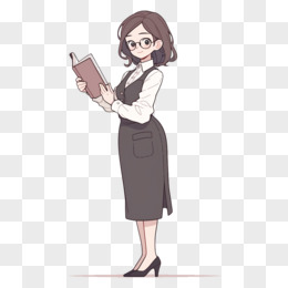 卡通风教师节抱着书本的女教师蓝色剪影免抠元素