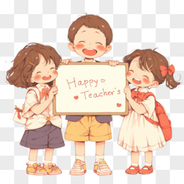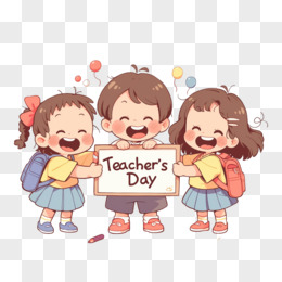 卡通风教师节学生给男老师送礼物场景免抠元素