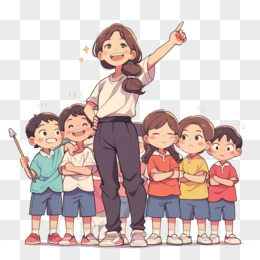 卡通风教师节教师带领学生上课免抠元素
