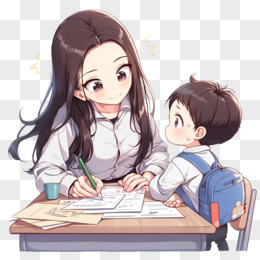 卡通风教师节教师辅导学生习题免抠元素