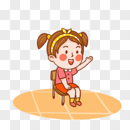 手绘卡通坐在小板凳上的小女孩免抠元素