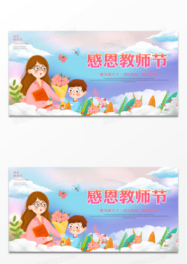 简约卡通插画感恩教师节教师节快乐展板幼儿园教师节