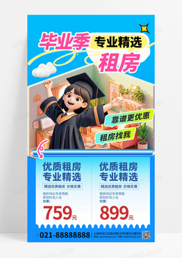 蓝色渐变毕业租房特惠活动女孩手机海报