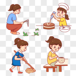一组手绘学生形象上劳动课的各种劳动项目插画套图合集元素一