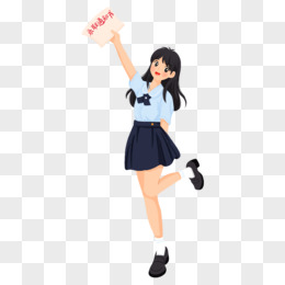 手绘插画风青春女学生手拿录取通知书免抠元素