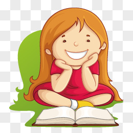 卡通手绘女孩读书元素