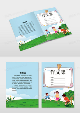 手绘两个小朋友在草地上比赛跳绳免抠元素