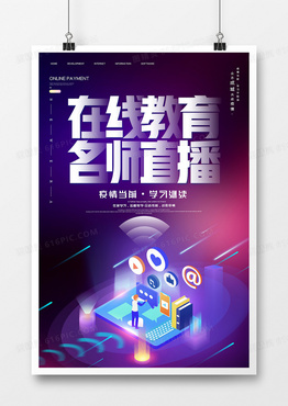 简约线上教学直播教程教育培训听课不停学海报
