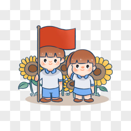 卡通手绘学生穿校服戴红领巾敬礼元素