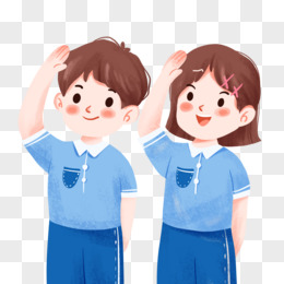卡通手绘穿着蓝色校服学生敬礼免抠元素