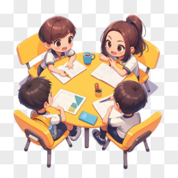 卡通四个背书包穿着校服的学生走路上学免抠元素