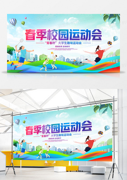 蓝色时尚春季校园运动会运动会宣传展板设计
