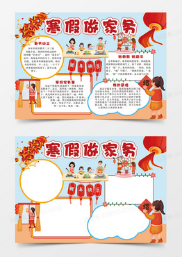 简约蓝色寒假生活寒假做家务小报手抄报