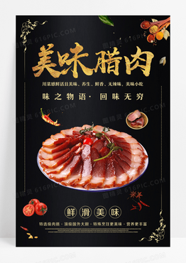 黑色简约大气美味腊肉川菜美食海报设计毛血旺海报设计