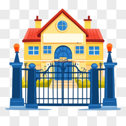 卡通简约动漫风平面建筑建筑大门学校免抠元素
