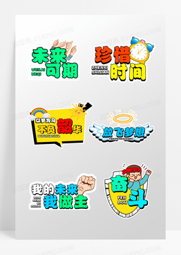 一组矢量风开学新学期上学手举牌气泡框套图系列六素材