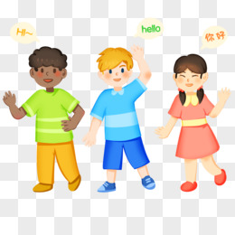 手绘卡通不同国家的小孩打招呼免抠素材