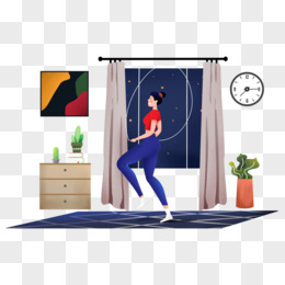 手绘女孩晚上饭后跳绳运动免抠元素