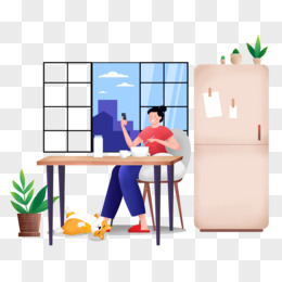 手绘卡通女孩吃早餐免抠元素