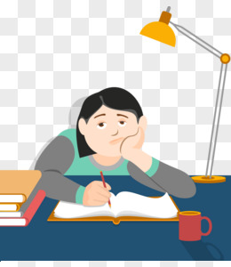 卡通手绘免抠学习的女孩写试卷的素材