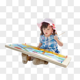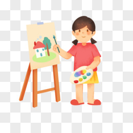 手绘卡通女孩认真画画免抠素材