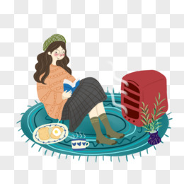 卡通女孩寒假生活看书免抠元素