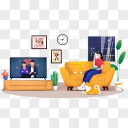 手绘女孩假深夜追剧免抠元素