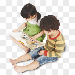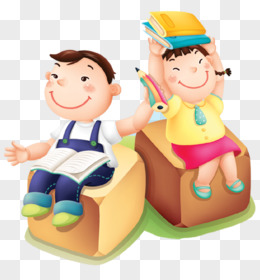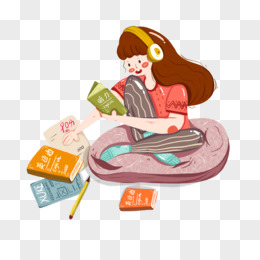 手绘卡通快乐女孩坐在书上飞行场景元素