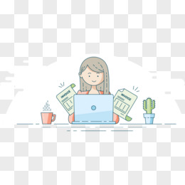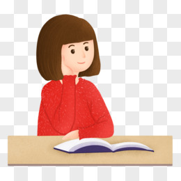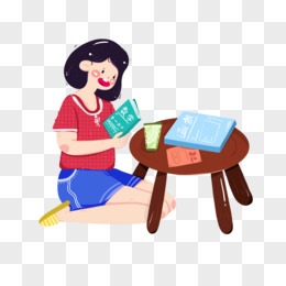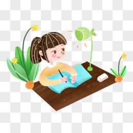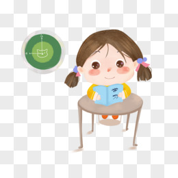 一组手绘插画风寒假小女孩作息时间套图之学习时间元素