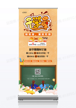 手绘风开学季学习用品促销X展架