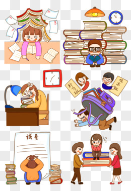 一组卡通学生读学业压力合集之看看很多复习资料元素