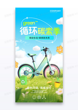 蓝色天空绿色出行3d自行车碳循环环保海报