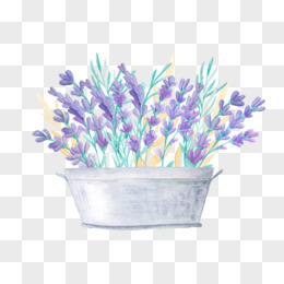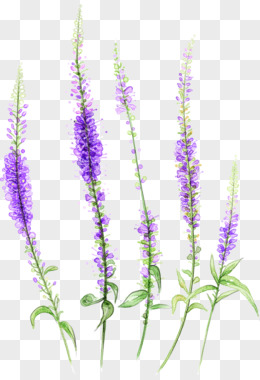 水彩蜡笔风格女孩站在薰衣草花丛中背影素材